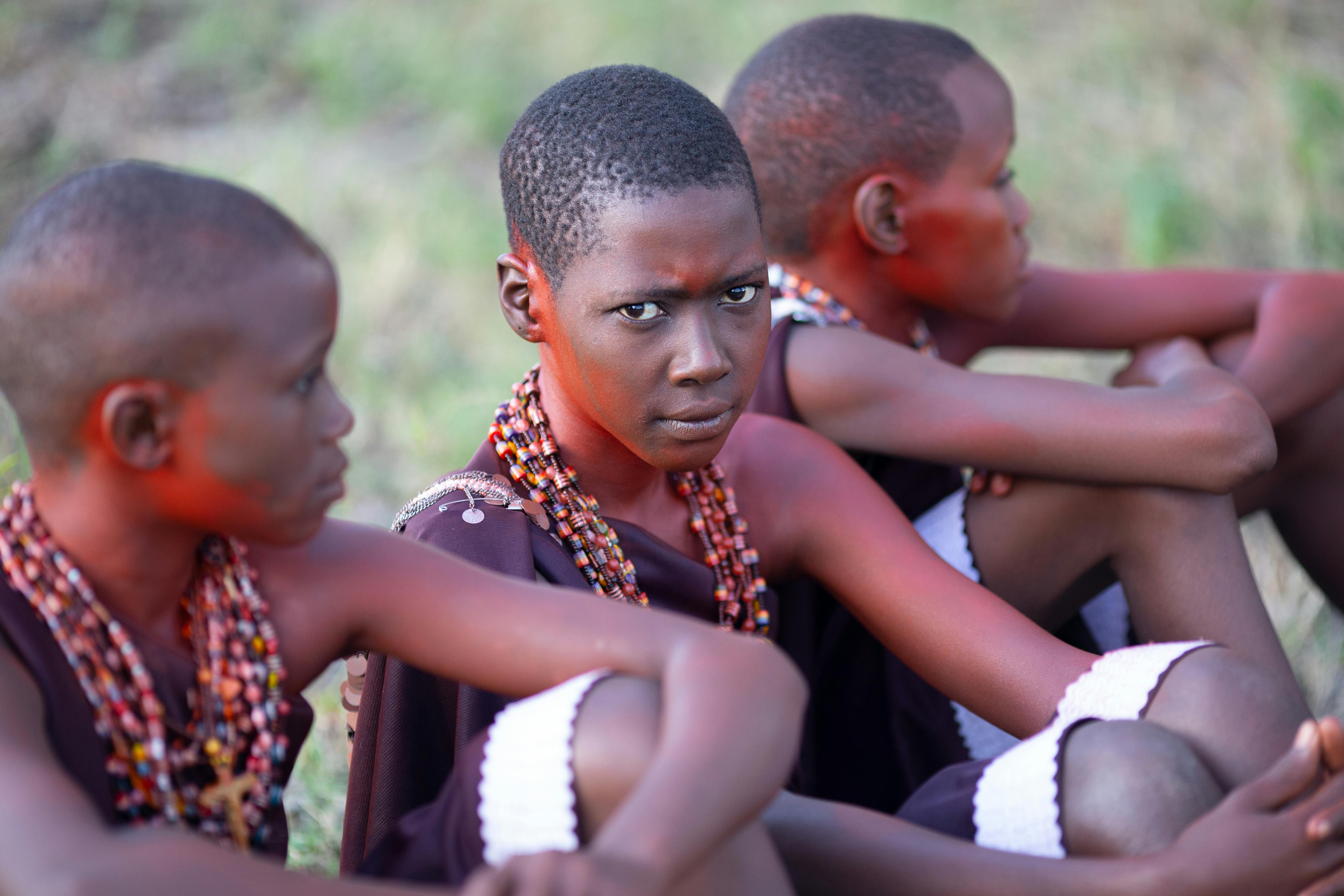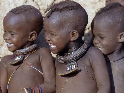 #39 Three Happy Himba Children Enjoy Watching a Dance Namibia