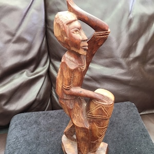 Vintage African Wood Carving Depicting African Man Playing a Drum Etsy