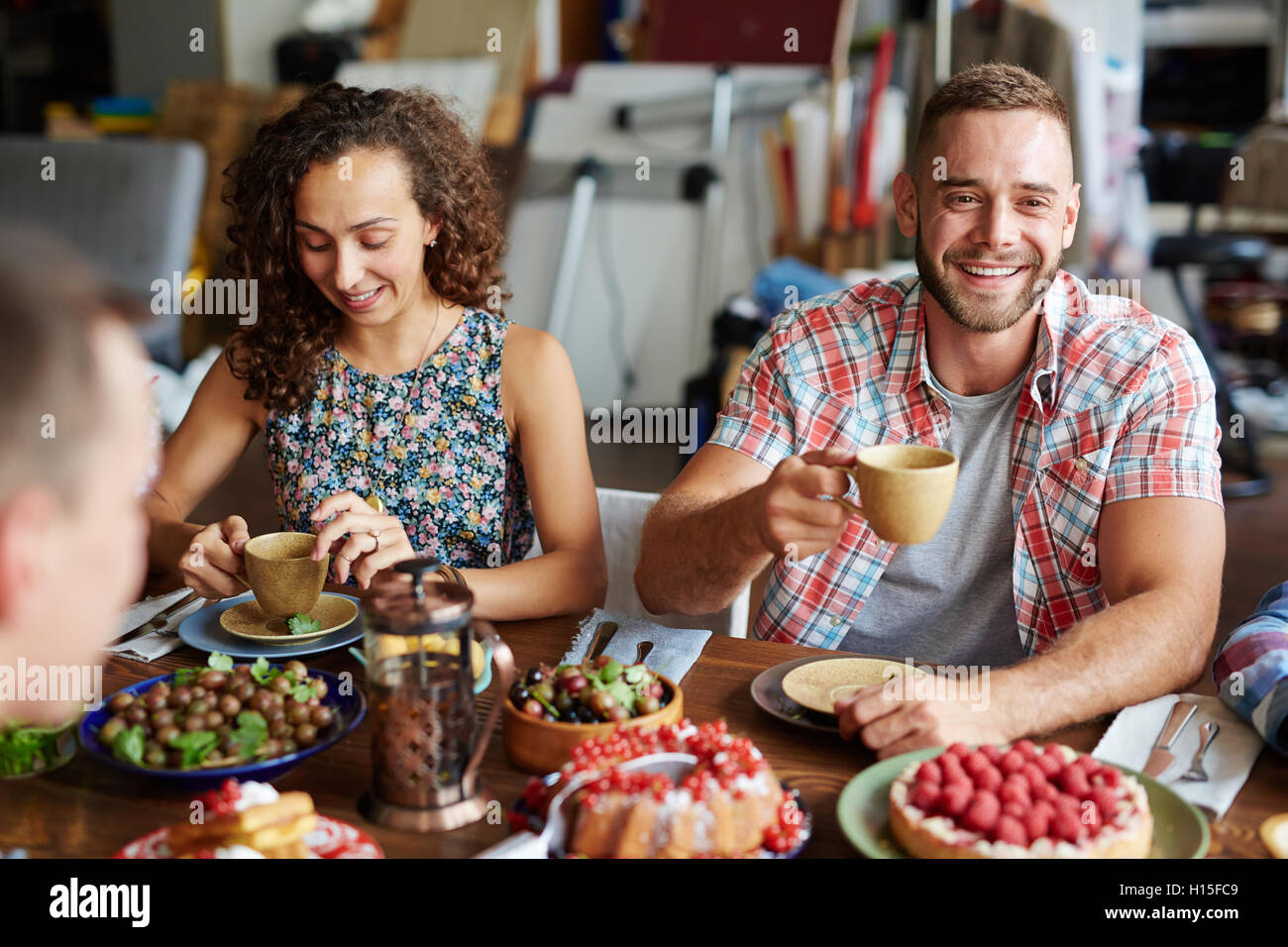Talk by dinner Stock Photo Alamy