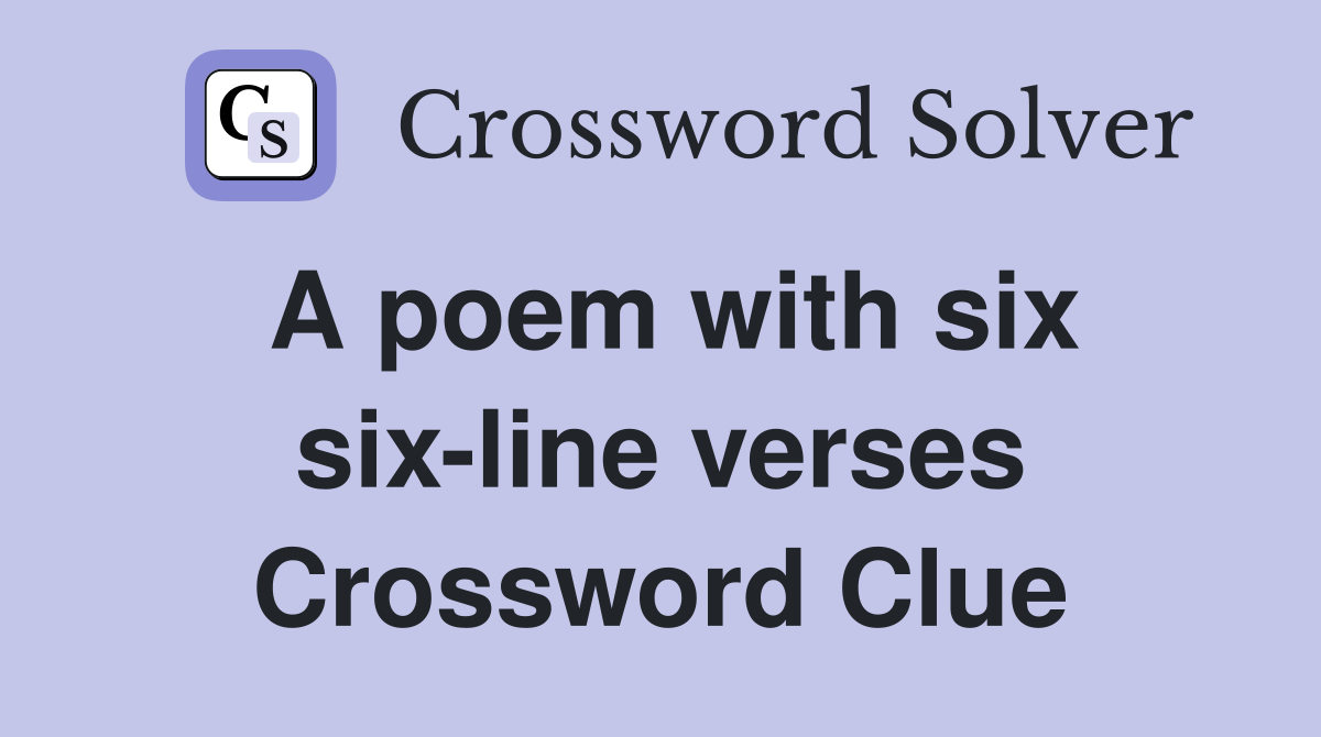 A poem with six six line verses Crossword Clue Answers Crossword Solver