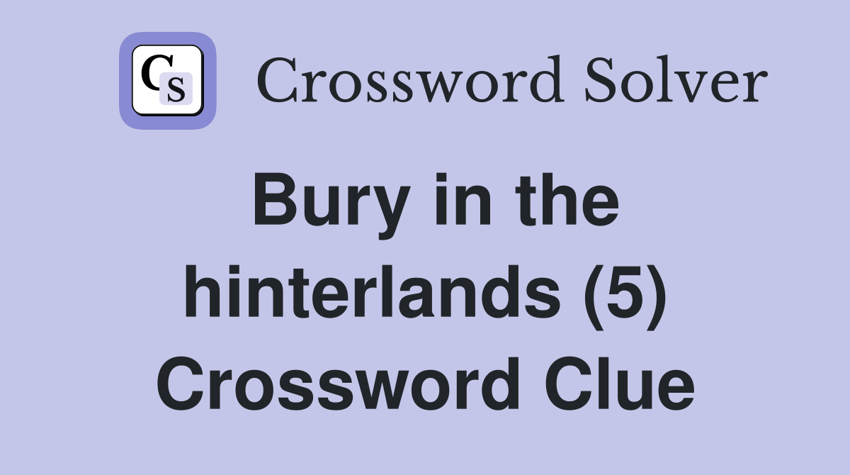 Bury in the hinterlands (5) Crossword Clue Answers Crossword Solver