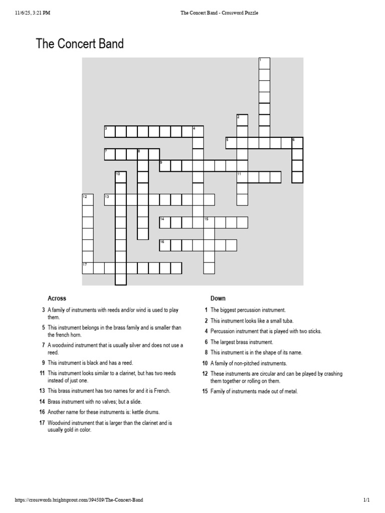 The Concert Band Crossword Puzzle PDF Brass Instruments Musical