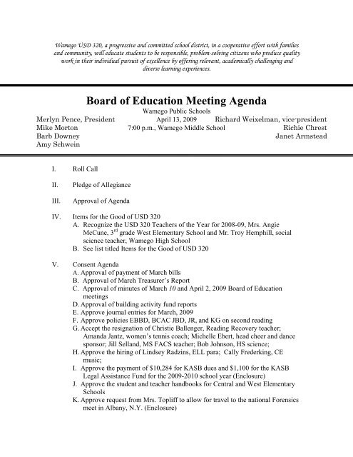Board of Education Meeting Agenda USD 320