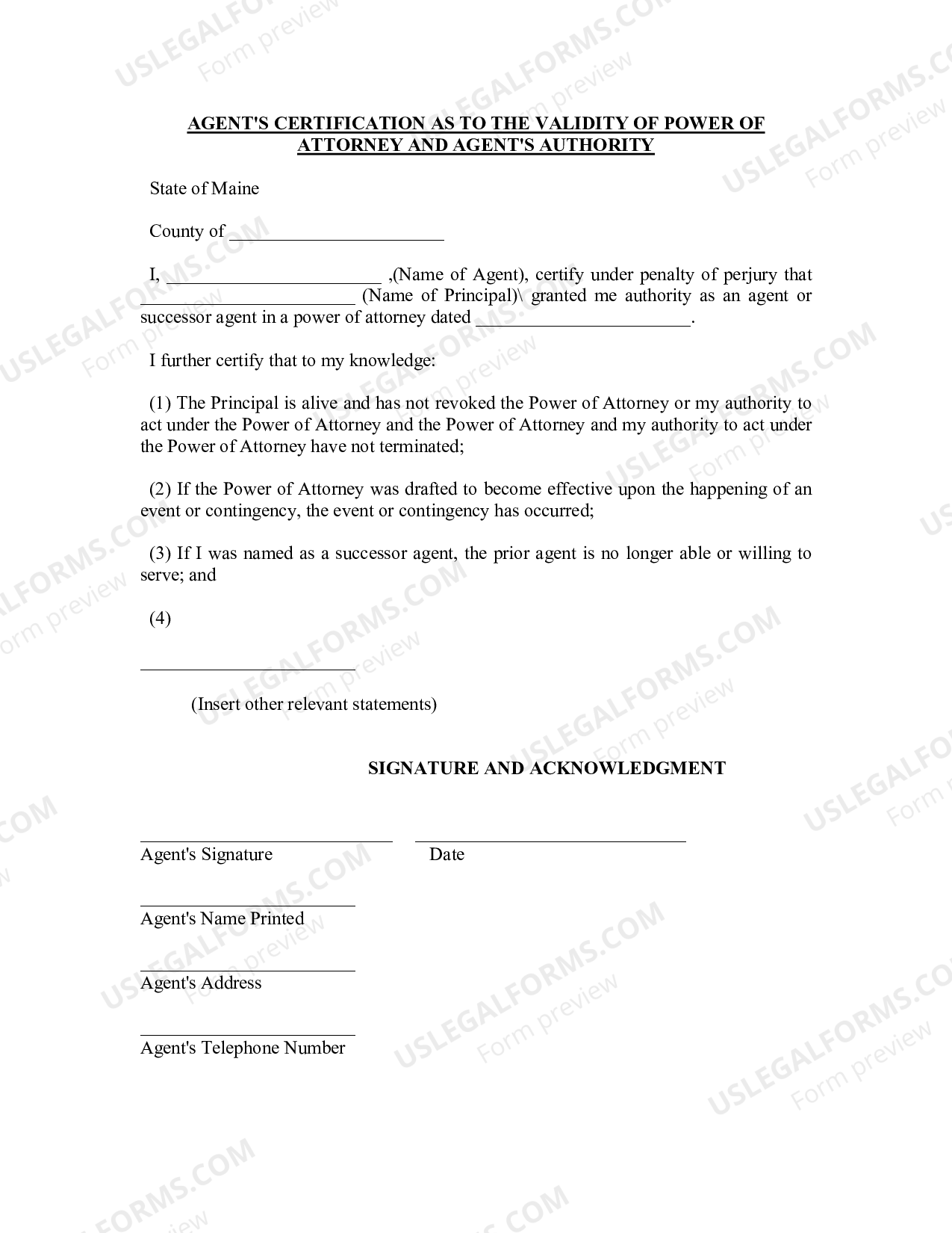 Fillable Online Agent Certification of Power of Attorney Validity 2023