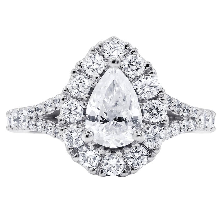 Certified 1 97 Carat Halo Pear Cut Diamond Ring For Sale at 1stDibs