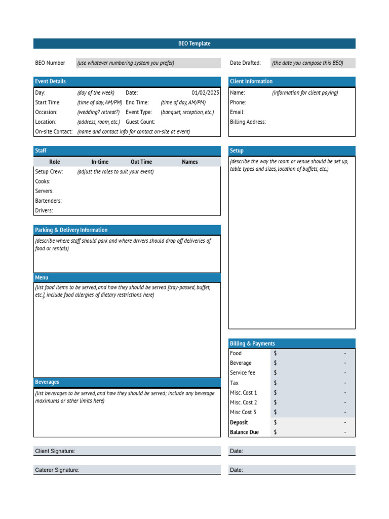 BEO Template PDF