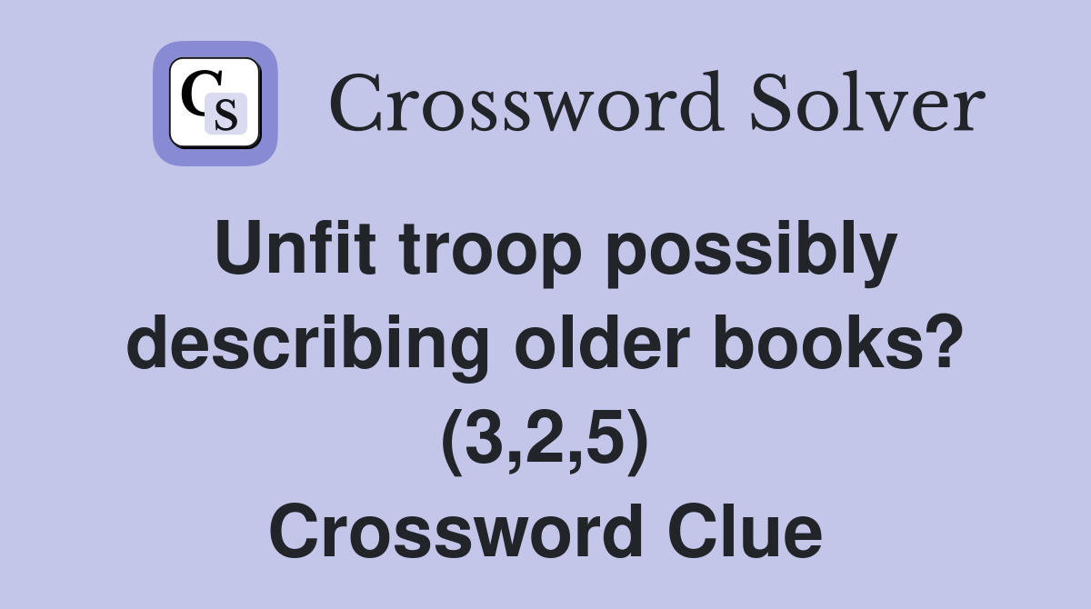 Unfit troop possibly describing older books? (3 2 5) Crossword Clue