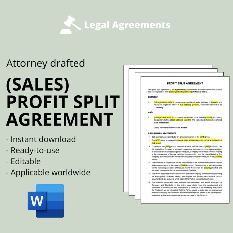 Sales Profit Split Agreement Template Instant Download Ready to use