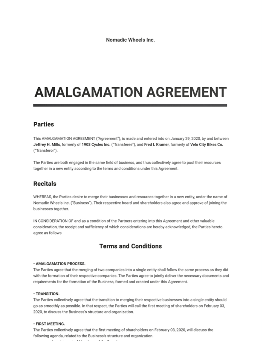 Amalgamation Agreement Template Google Docs Word Apple Pages