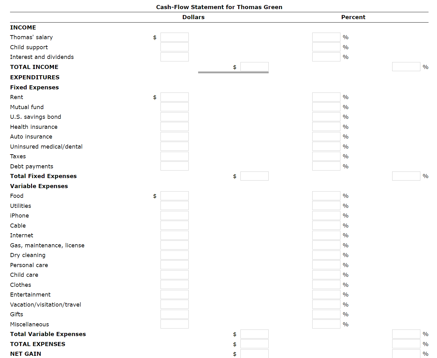 Solved Balance Sheet for Thomas Green Dollars Percent ASSETS Chegg com