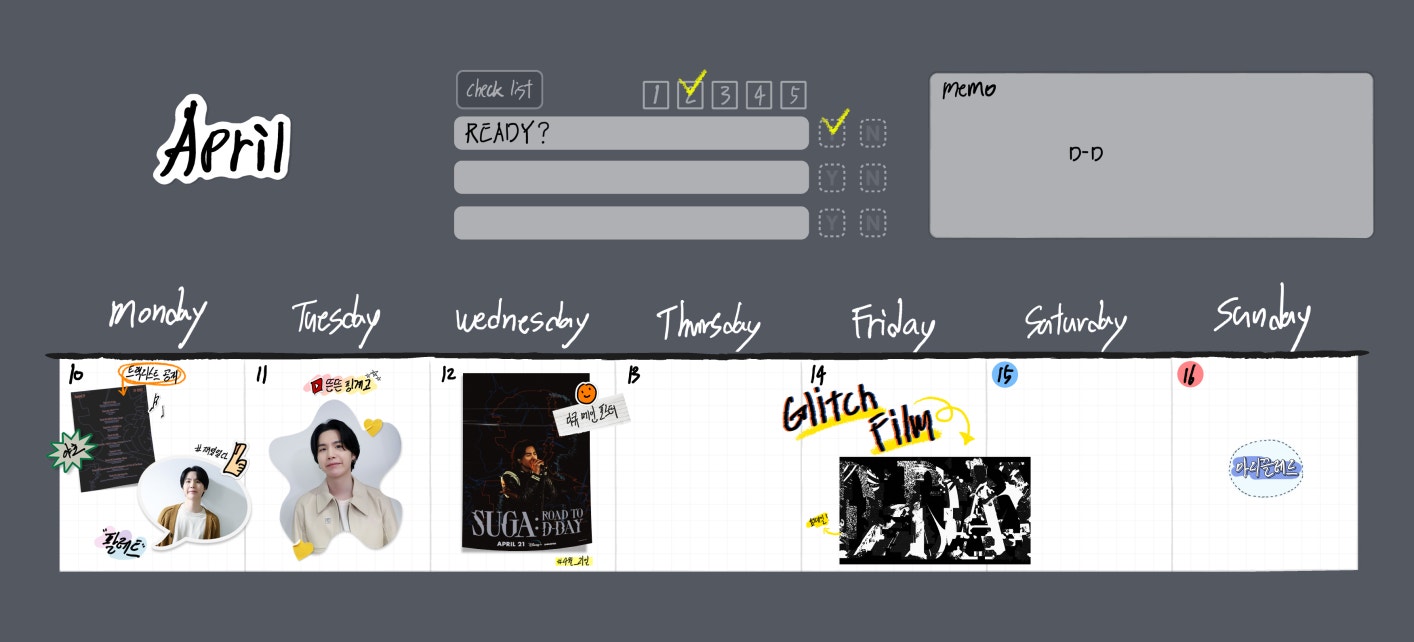 SUGA I Agust D 애옹주간달력 (D DAY Calendar)
