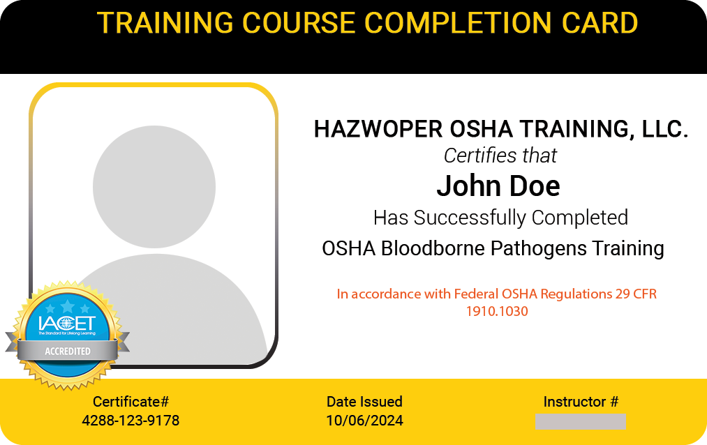 HSI Bloodborne Pathogens (BBP) Digital Certification Card (2020)