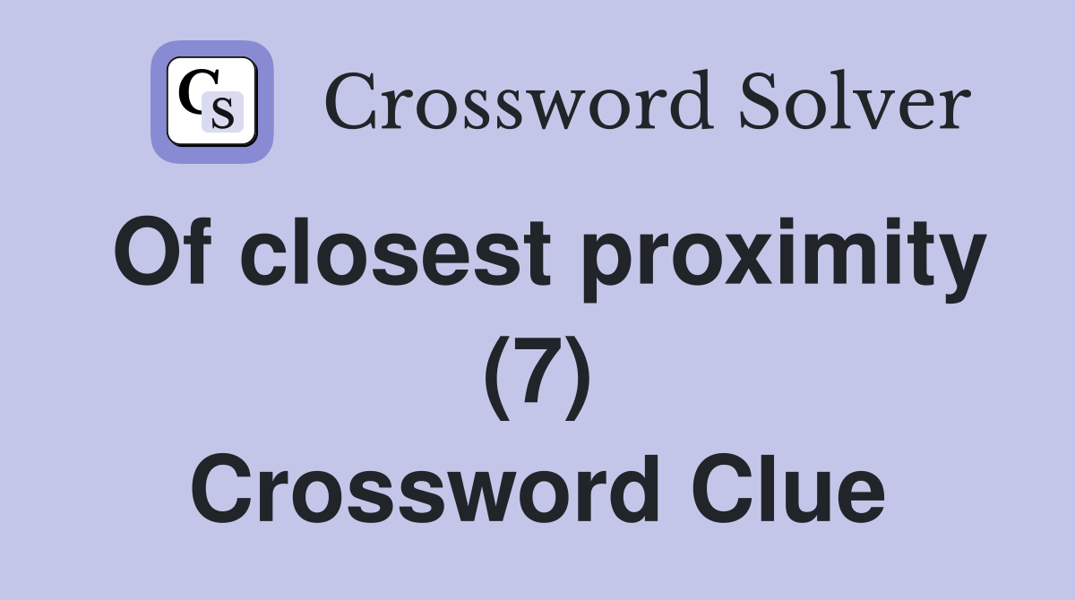 Of closest proximity (7) Crossword Clue Answers Crossword Solver