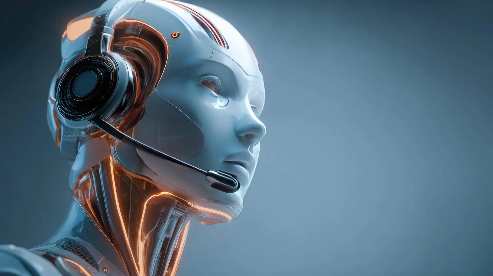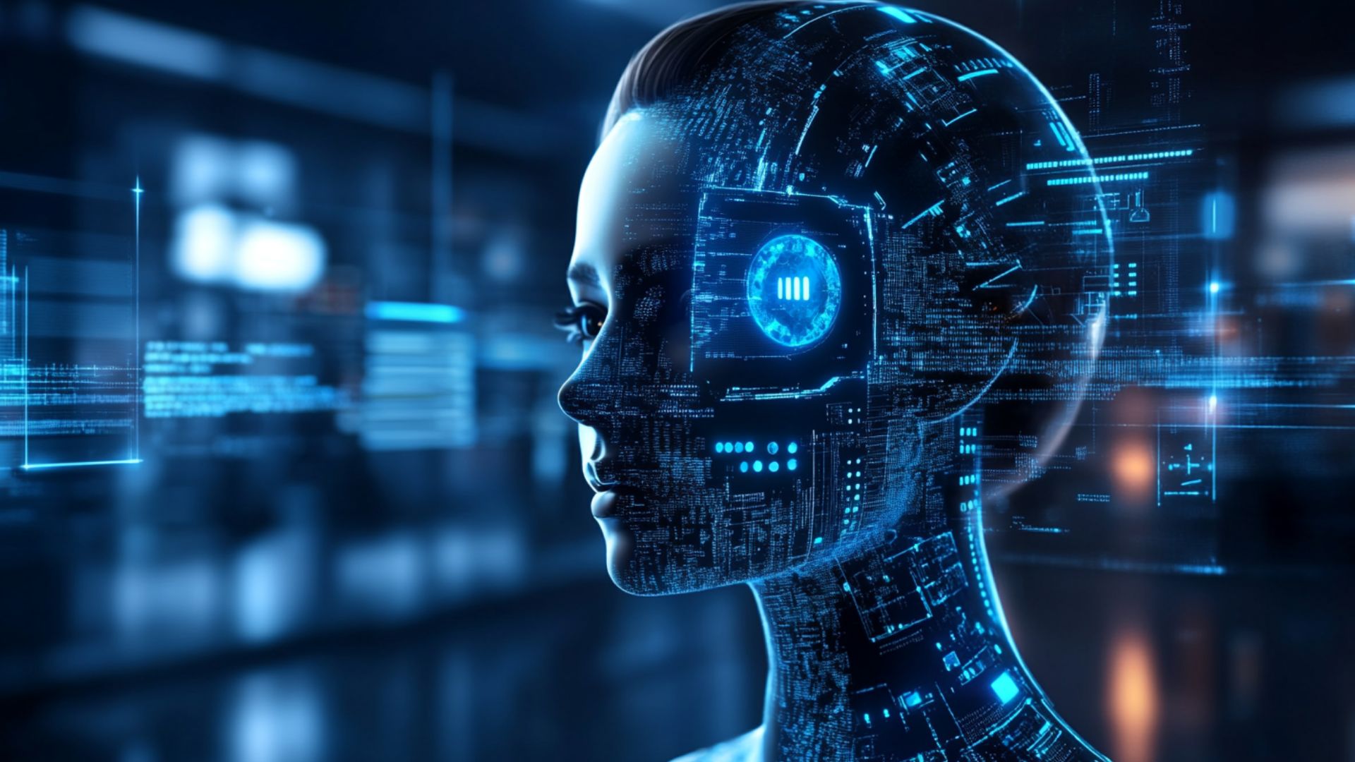 AI Artificial intelligence humanoid side portrait view with blue and