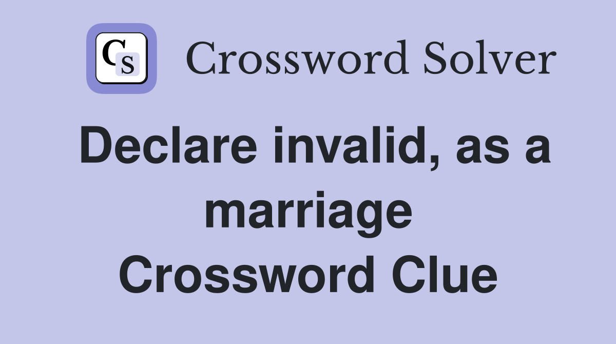 Declare invalid as a marriage Crossword Clue Answers Crossword Solver