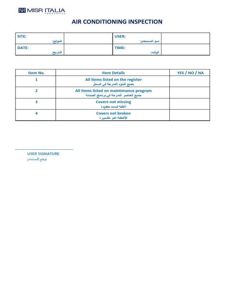 Air Conditioning HVAC Inspection Checklist PDF MS Word Template File