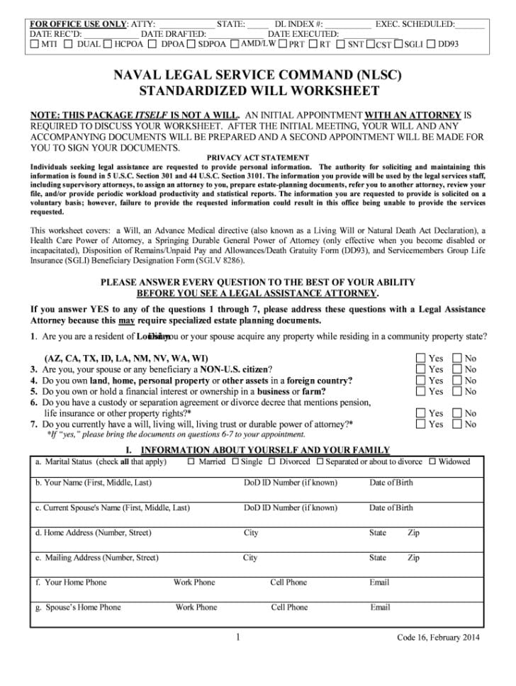 Here are some of the images for Air Force Legal Assistance Will Worksheet that we found in our website database.