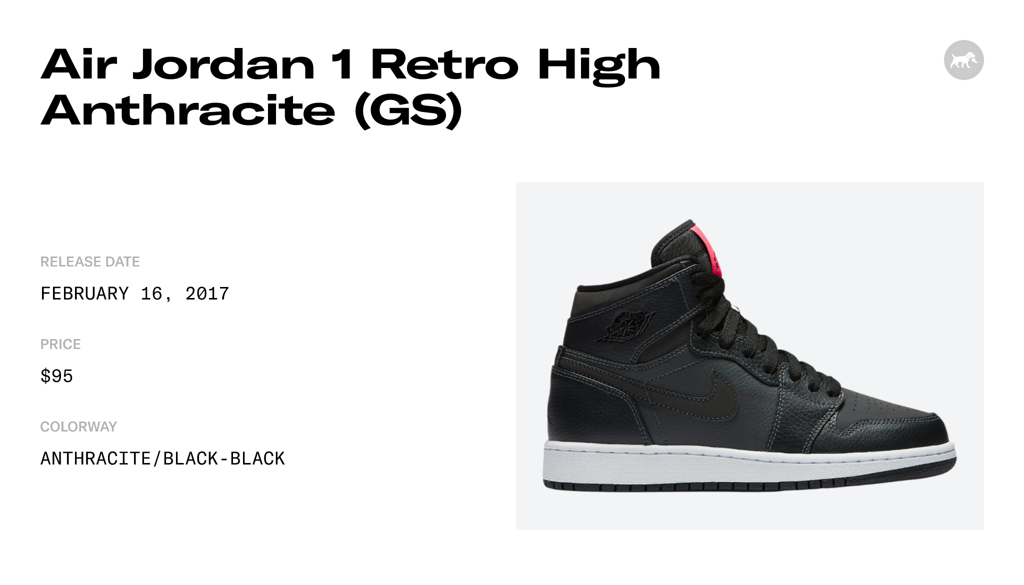 Air Jordan 1 Retro High Anthracite (GS) 332148 004