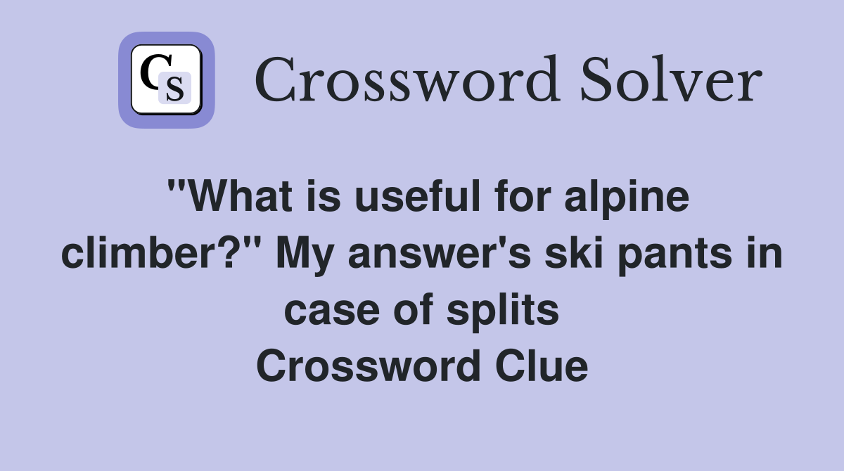 quot What is useful for alpine climber? quot My answer #39 s ski pants in case of