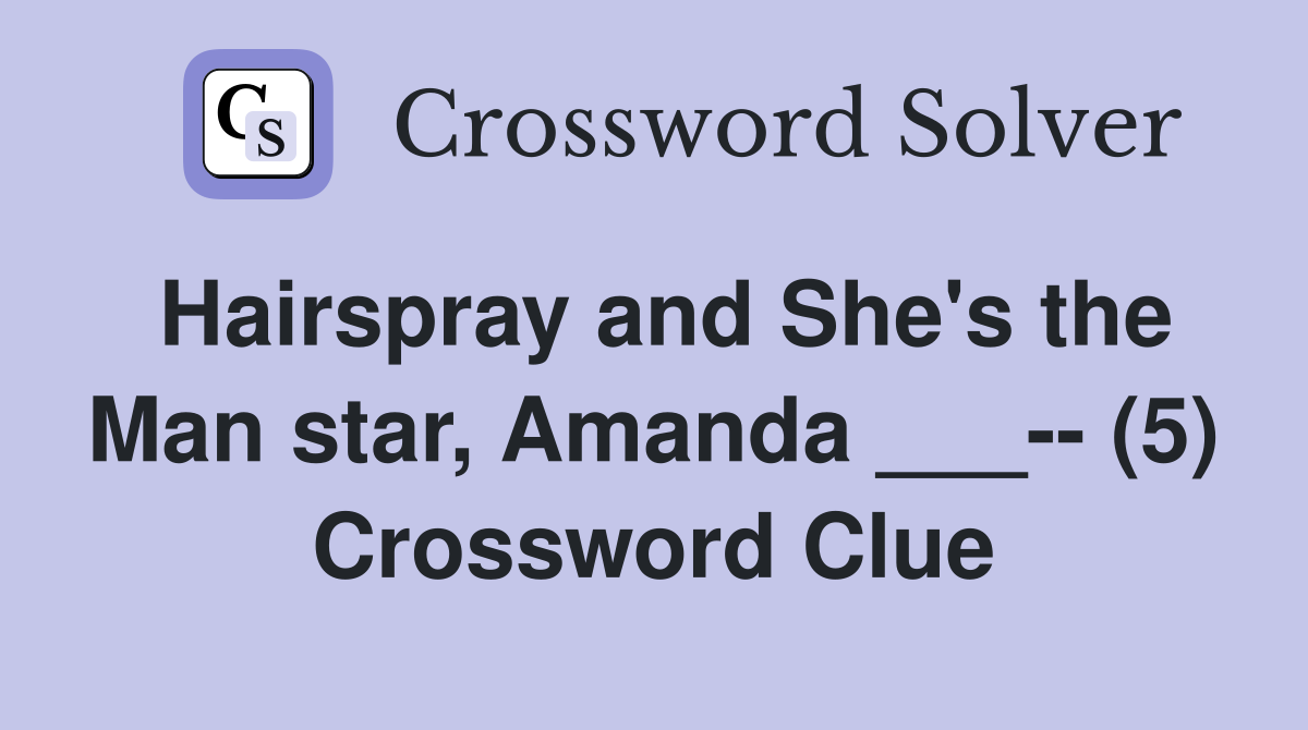 Hairspray and She s the Man star Amanda (5) Crossword Clue