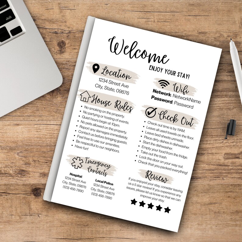 2 Page Airbnb Welcome 8 5x11in Welcome Sign 2 Page Airbnb Welcome
