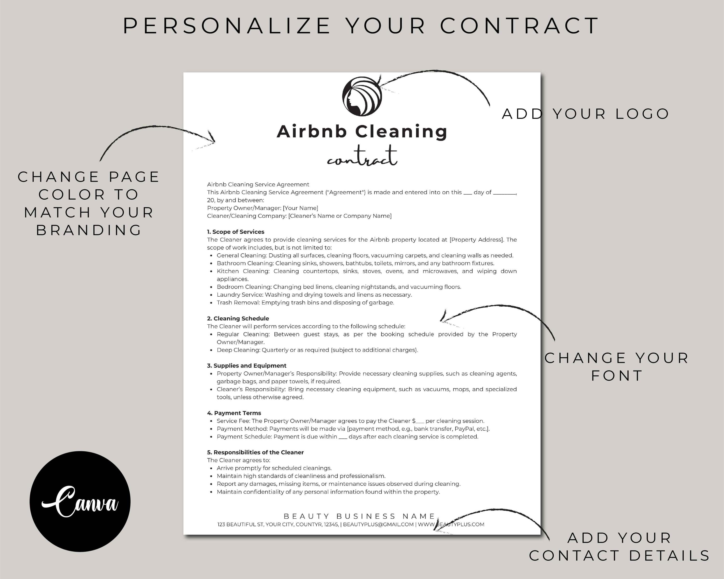 Airbnb Cleaning Contract Template PDF Word Professional Airbnb