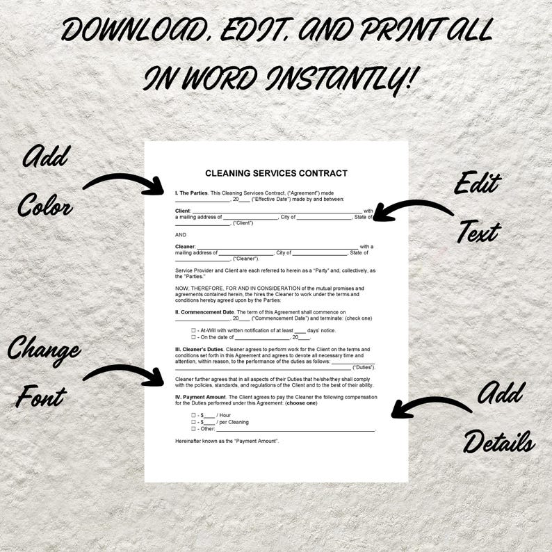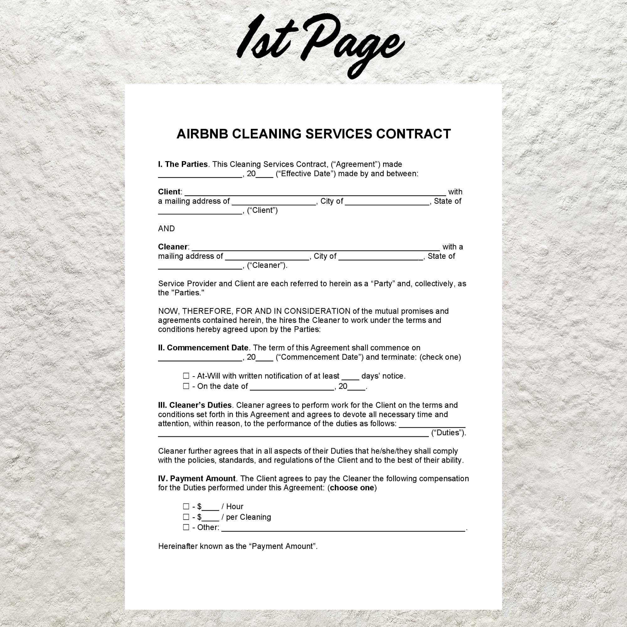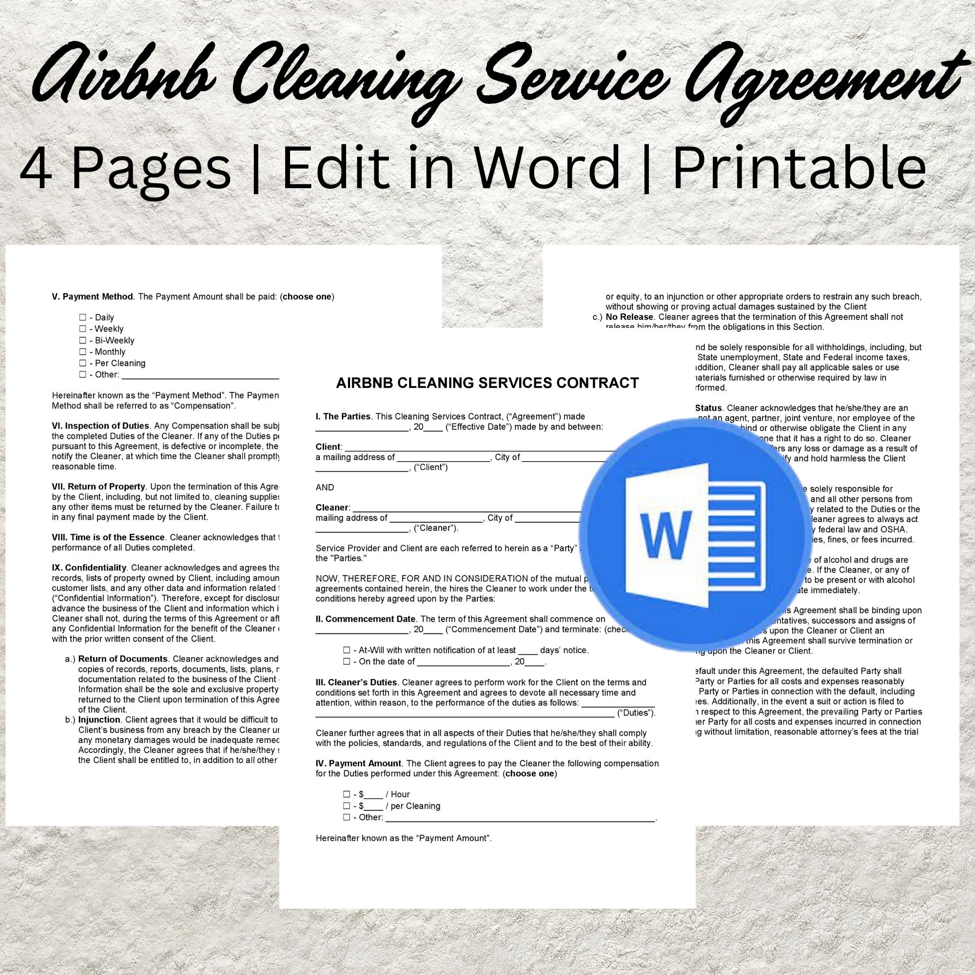 Printable Airbnb Cleaning Contract Template Editable in Word Google