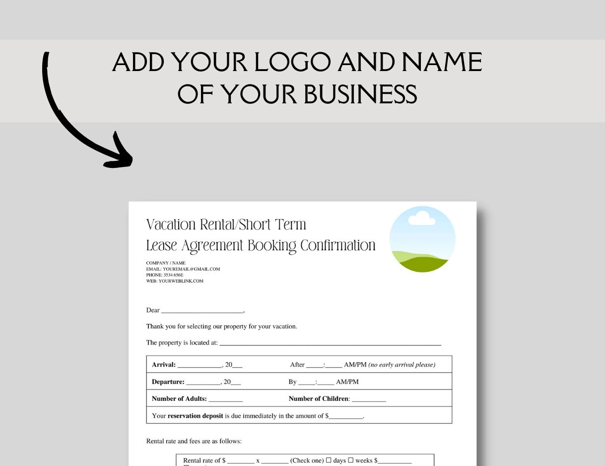 Editable and Printable Vacation Rental Short Booking Confirmation and