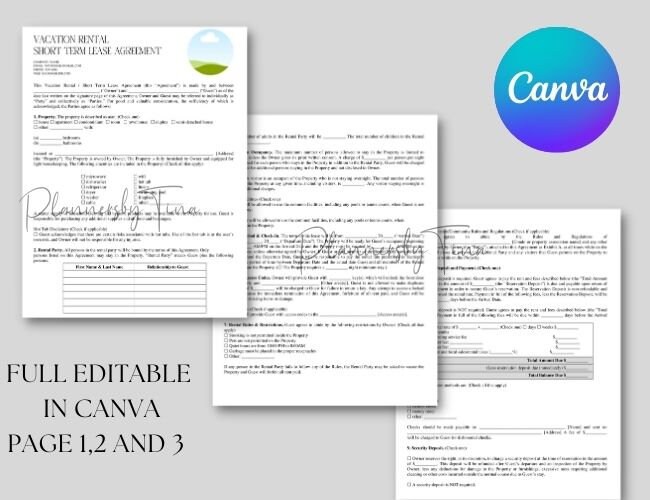 Editable and Printable Vacation Rental Short Term Lease Agreement