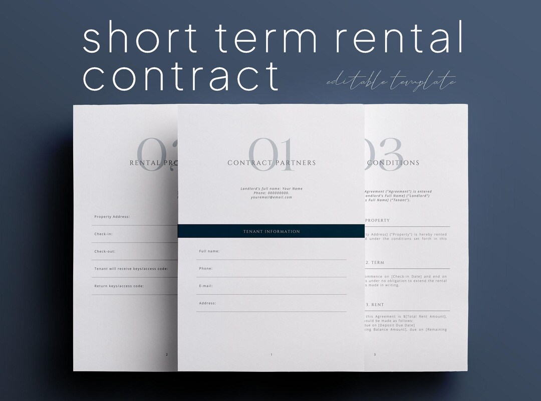 Short Term Rental Template Short Term Rental Contract Lease Short