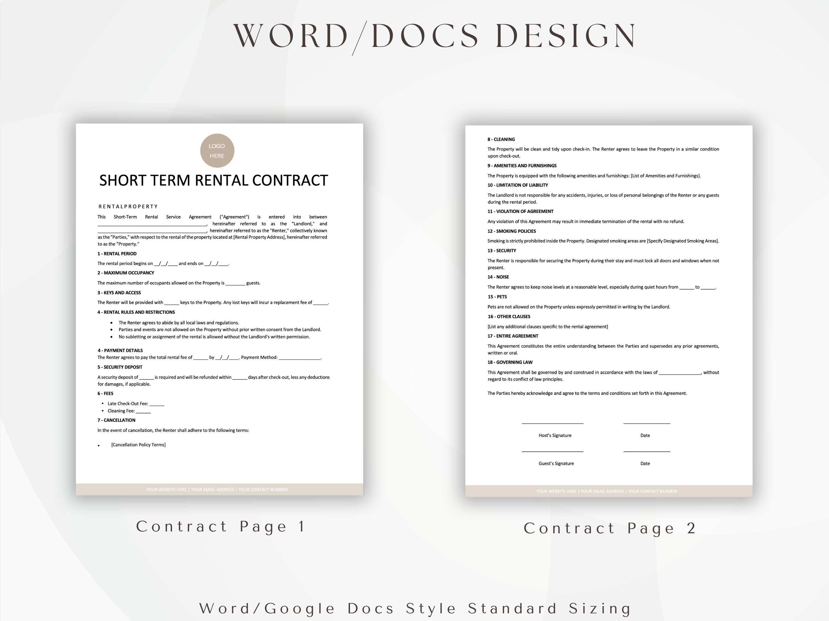Airbnb Rental Agreement Template Editable Instant Download Host and