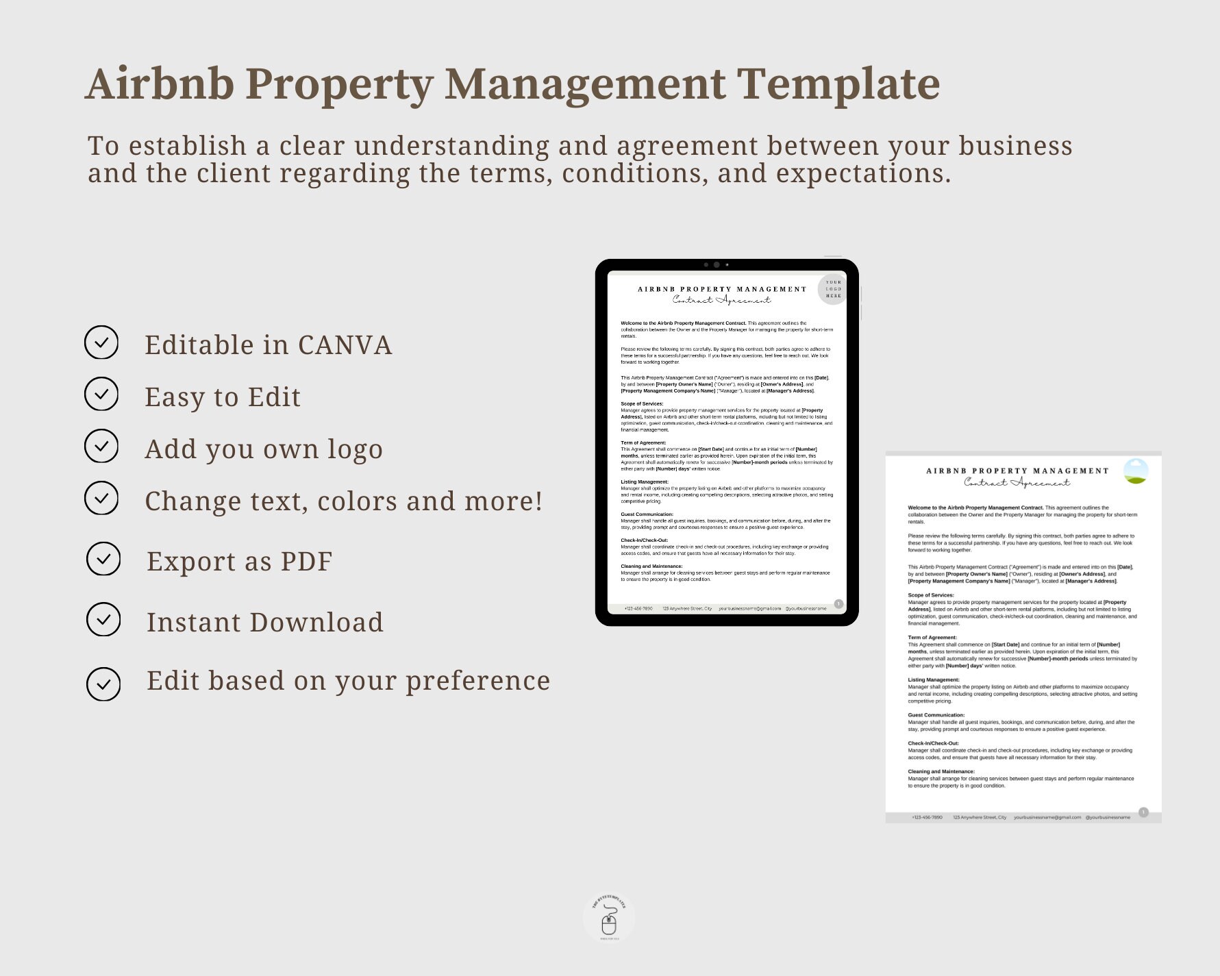 Airbnb Property Management Contract Editable VRBO Short term Rental
