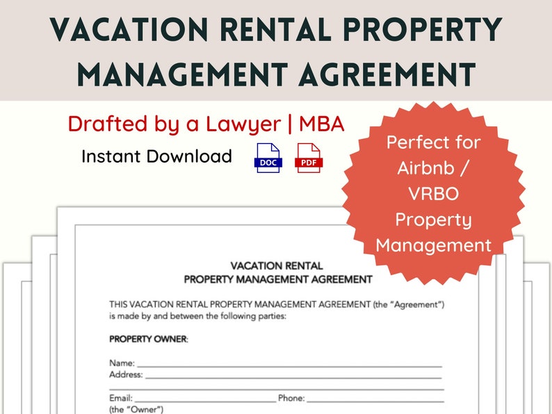 Airbnb Property Management Contract Editable VRBO Short term Rental