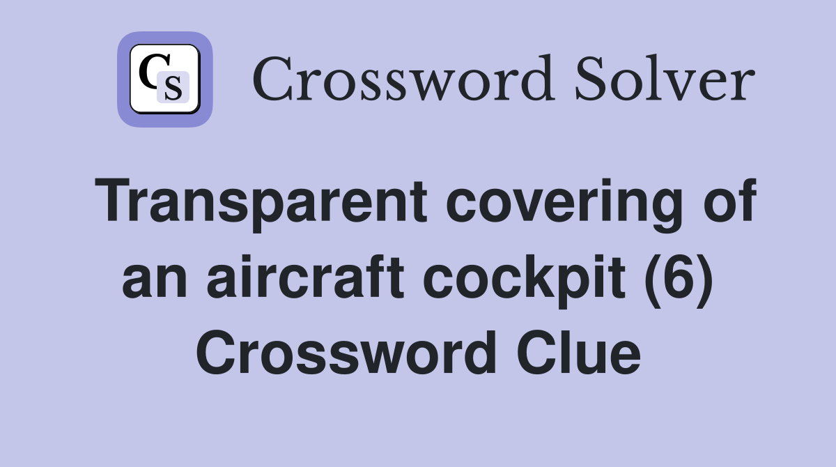 Transparent covering of an aircraft cockpit (6) Crossword Clue