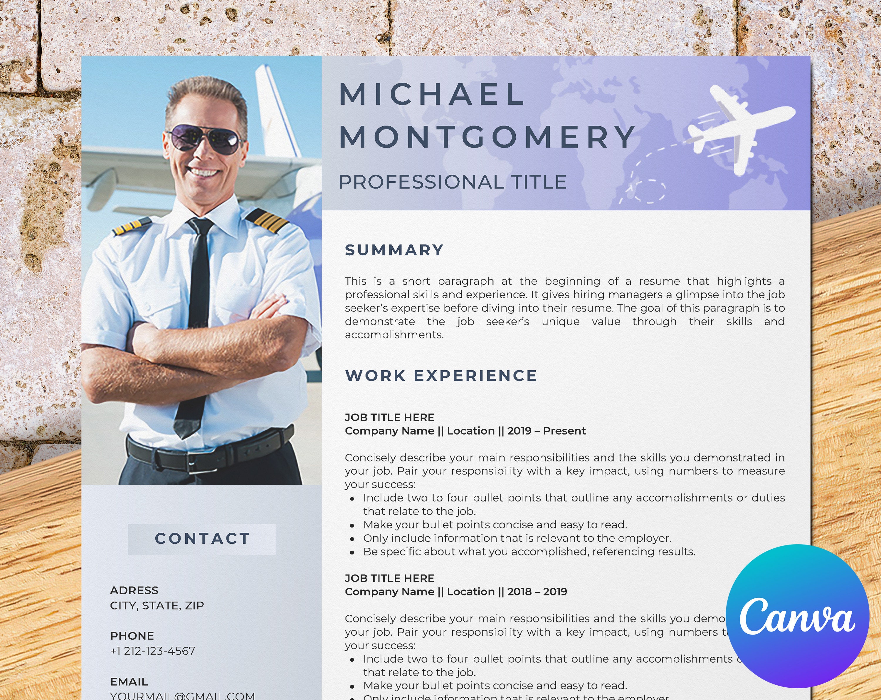 Pilot Resume Template for Canva Airline Pilot Resume Etsy
