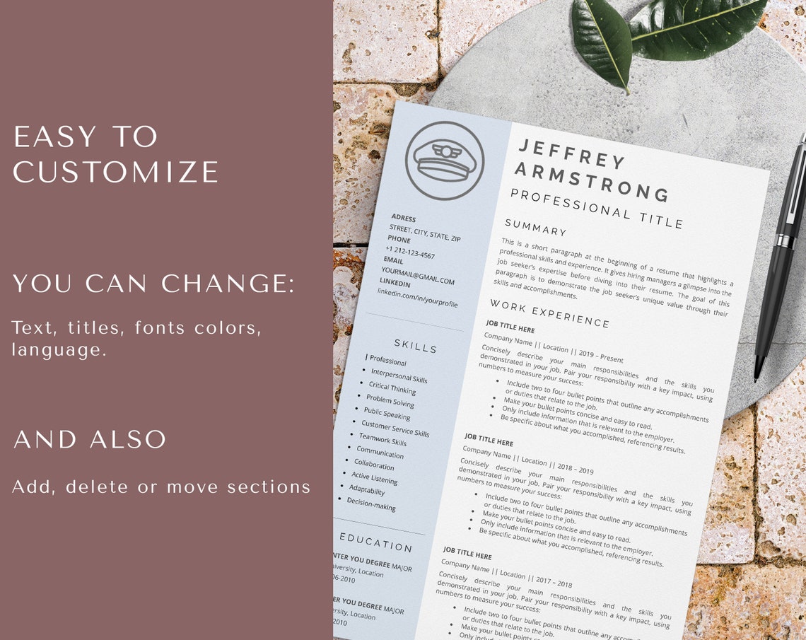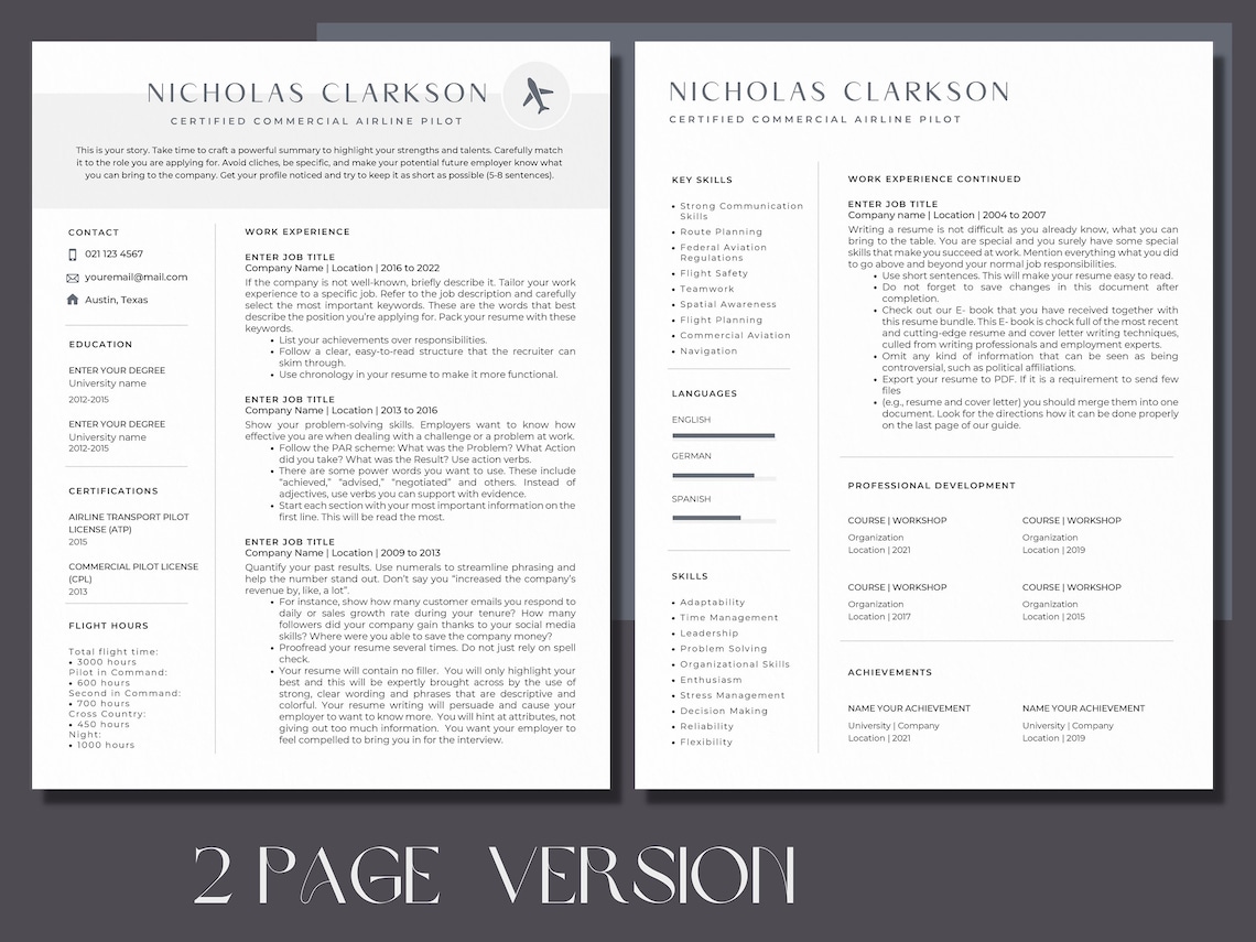 Pilot Resume Template for Word Airline Pilot Resume Etsy