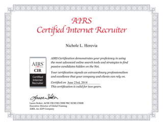 I #39 ve received my AIRS Professional Recruiter Certification A huge