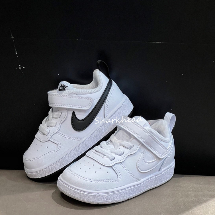 【Sharkhead】現貨 Nike Court Borough 童鞋 魔鬼氈 全白 黑白 小白鞋 BQ5453 100 蝦皮購物