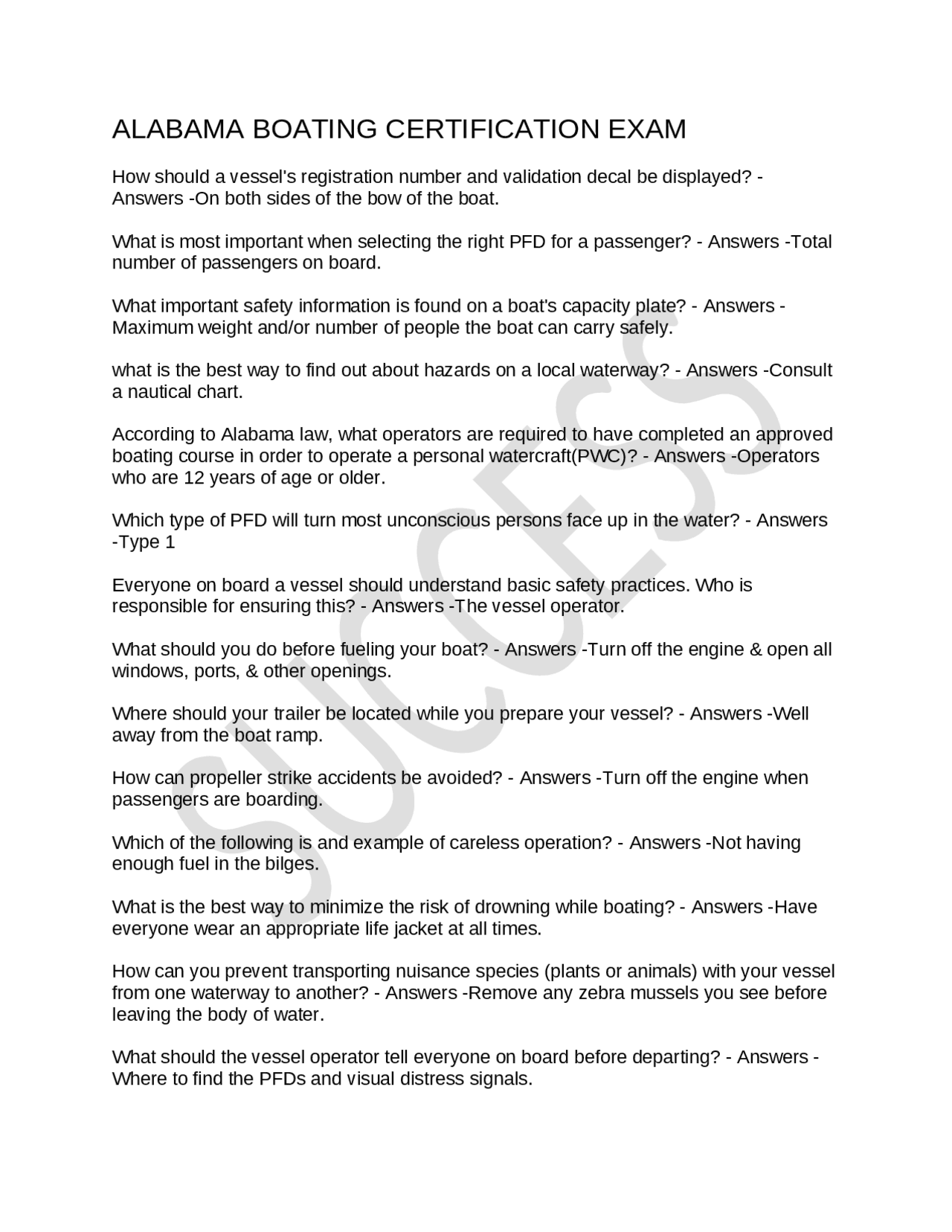 ALABAMA BOATING CERTIFICATION EXAM Exams Transport economics Docsity