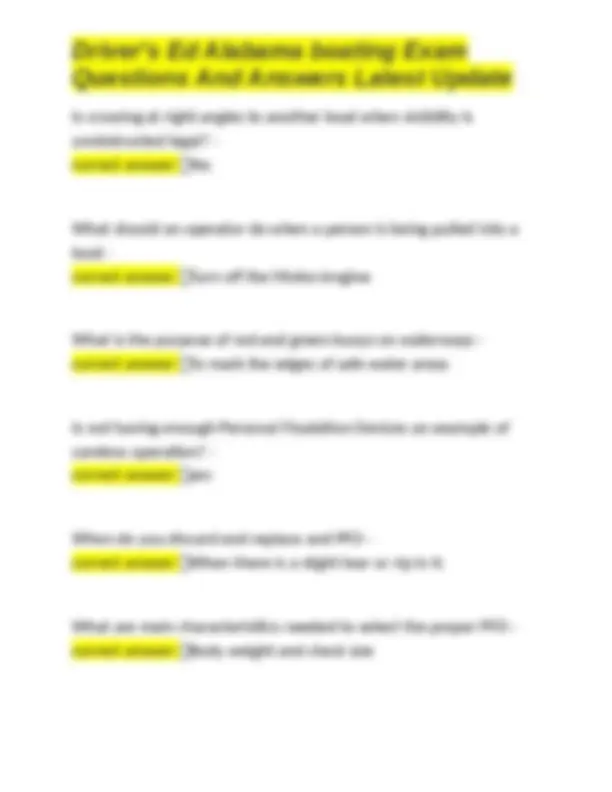 Alabama Boating Exam: Questions and Answers Exams Engineering Docsity