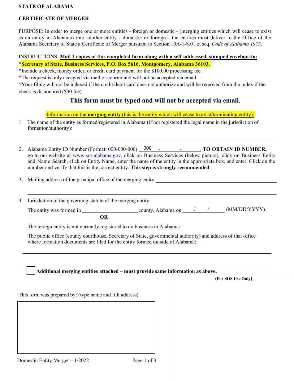 Alabama Certificate of Merger Fill Out Sign Online and Download PDF