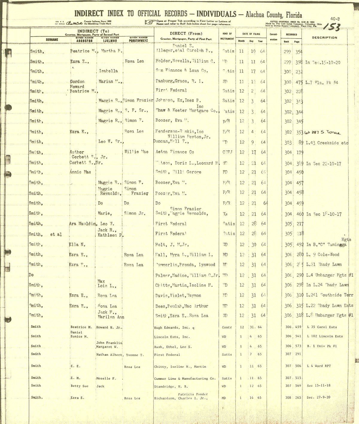Indirect Index to Official Records (Individuals) S Alachua County Florida