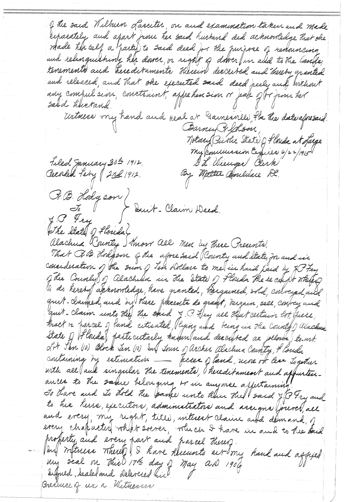 Deed Record 91 Alachua County Florida