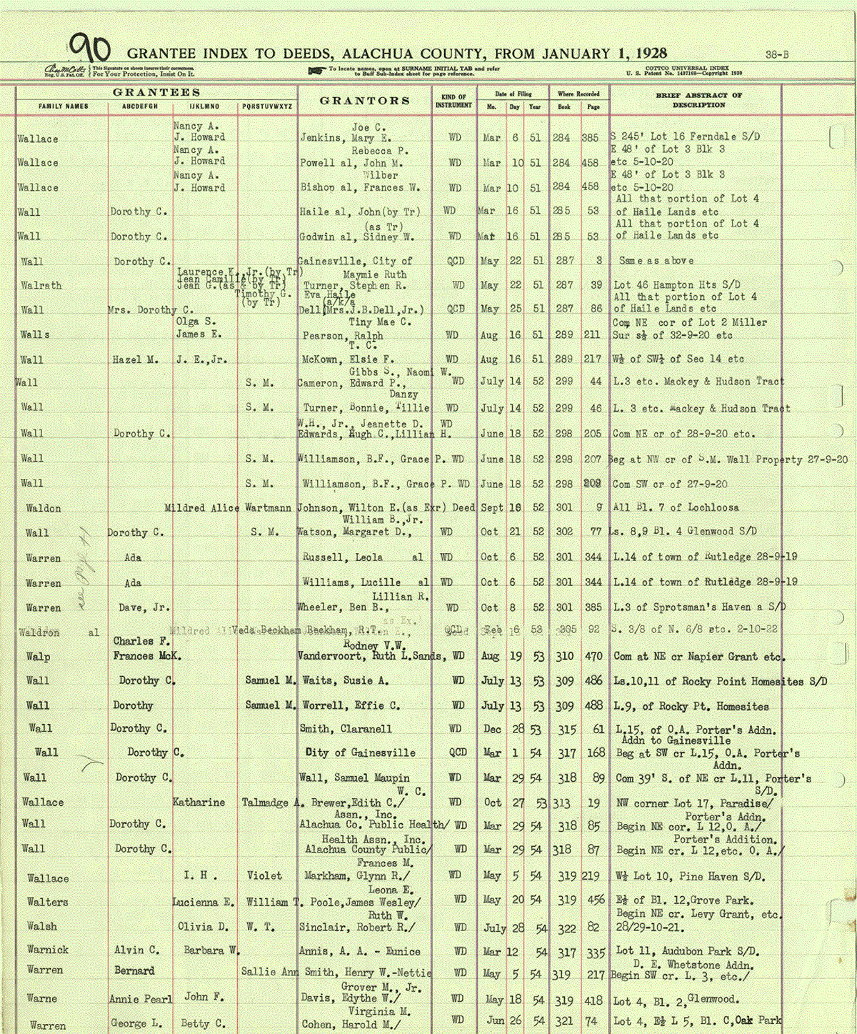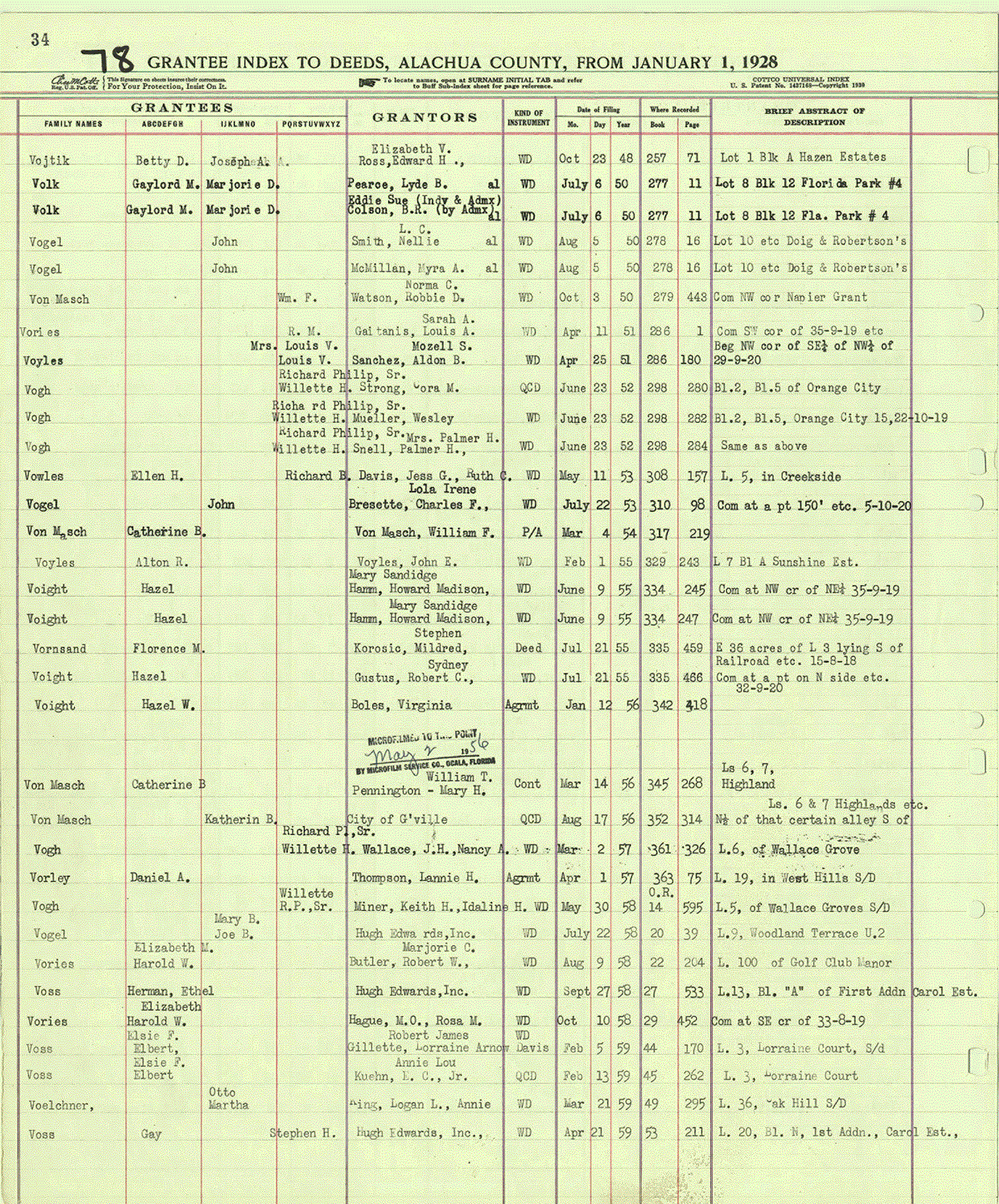 Deed Index Grantee T U V W X Y Z Alachua County Florida