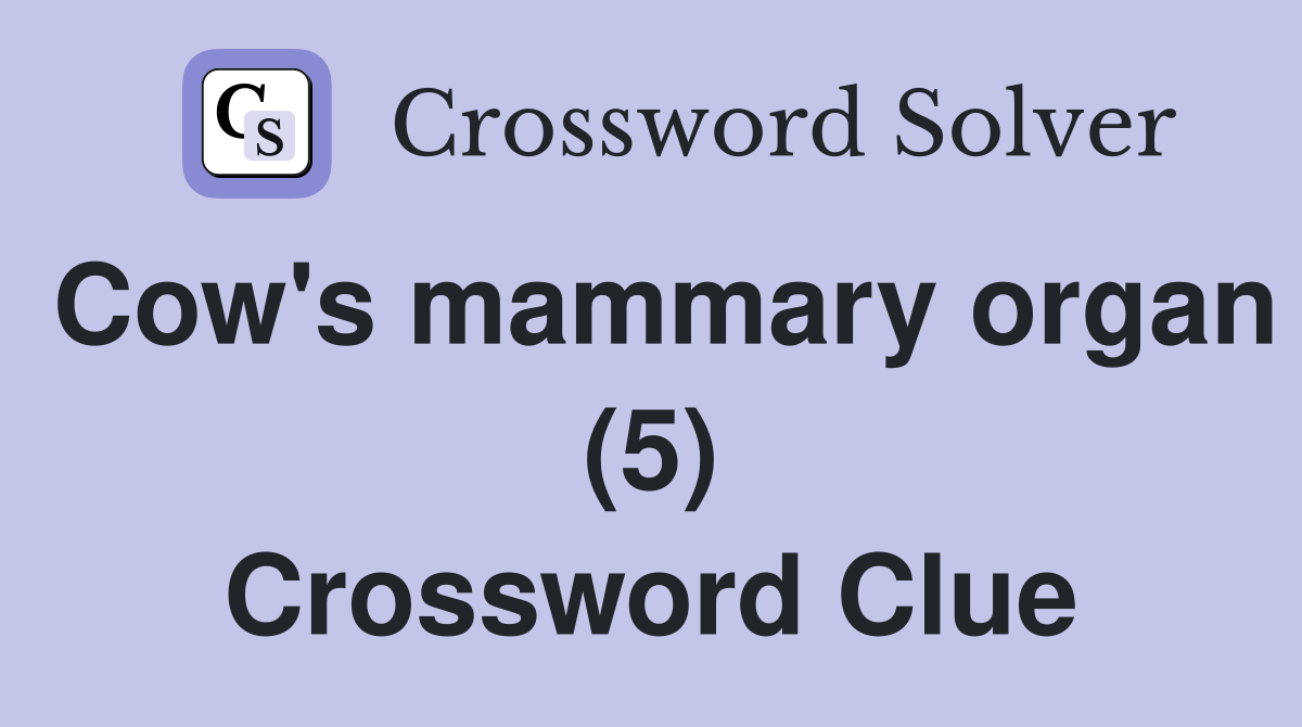 Cow #39 s mammary organ (5) Crossword Clue Answers Crossword Solver