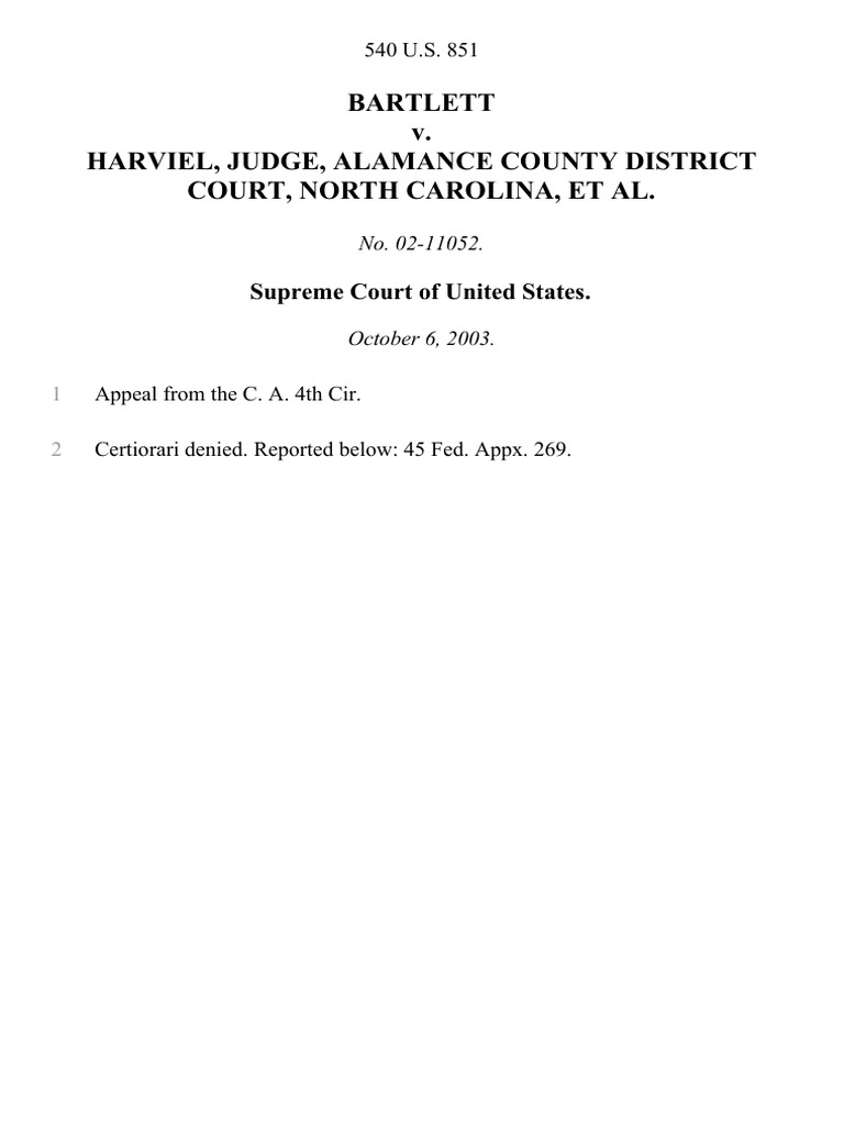 Bartlett v Harviel Judge Alamance County District Court North