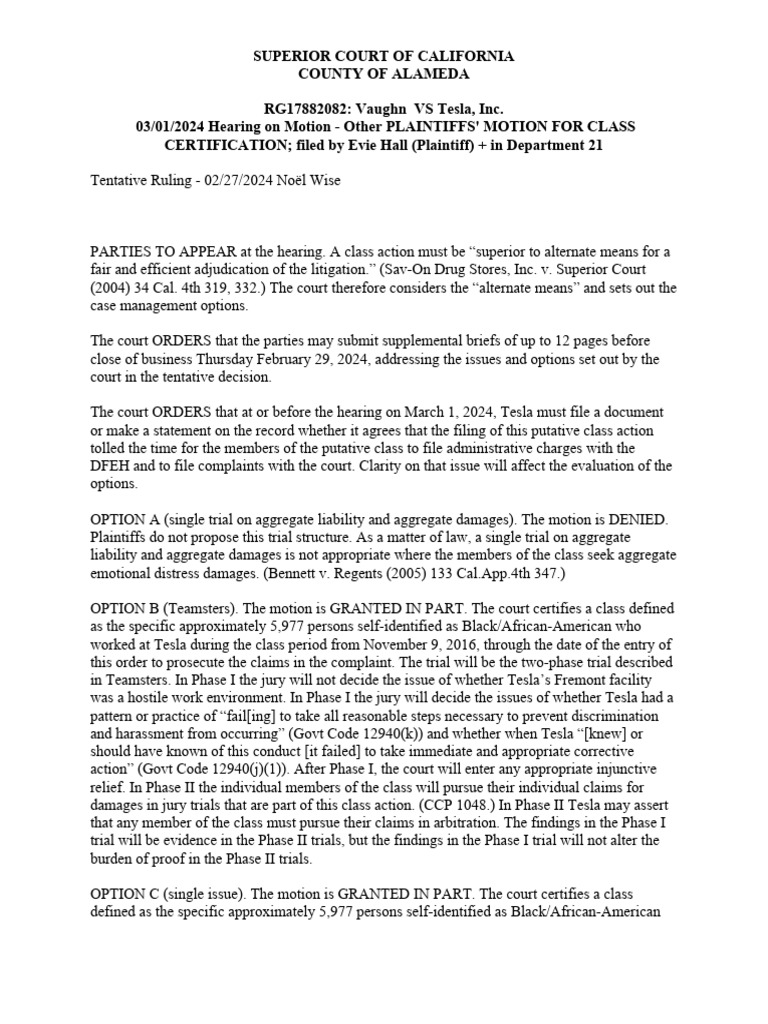 Tentative Ruling On Marcus Vaughn v Tesla Inc PDF