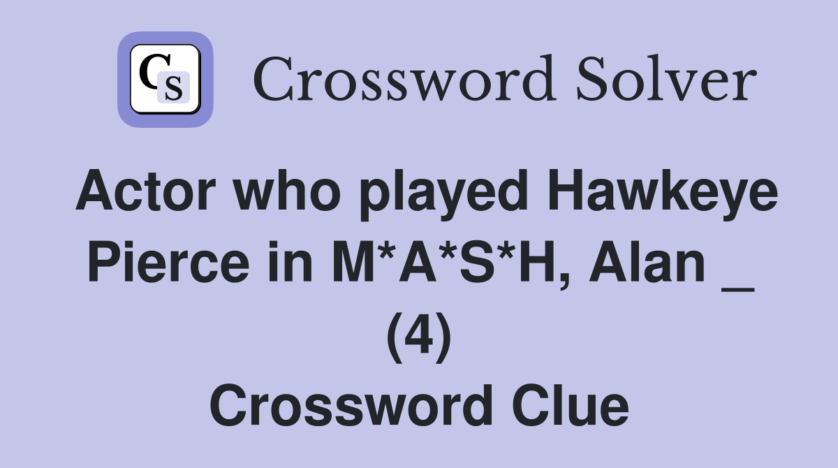 Actor who played Hawkeye Pierce in M*A*S*H Alan (4) Crossword Clue