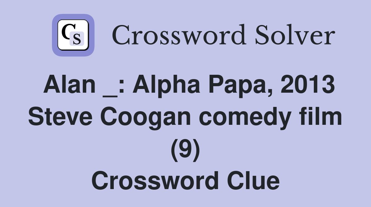 Alan : Alpha Papa 2013 Steve Coogan comedy film (9) Crossword Clue