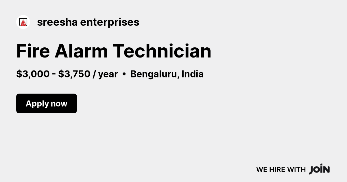 sreesha enterprises (Bengaluru): Fire Alarm Technician